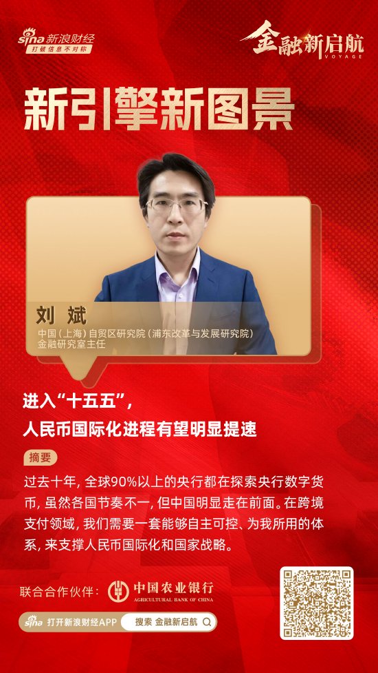 在此背景下,新浪财经推出《金融新启航·新引擎新图景》专题系列,邀请金融业界专家和学者,围绕“十五五”新周期下的金融变革展开前瞻性研讨。本期《金融新启航·新引擎新图景》对话中国(上海)自贸区研究院(浦东改革与发展研究院)金融研究室主任刘斌。他指出,过去十年,全球90%以上的央行都在探索央行数字货币,虽然各国节奏不一,但中国明显走在前面。在跨境支付领域,我们需要一套能够自主可控、为我所用的体系,来支撑人民币国际化和国家战略。